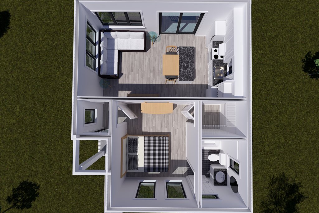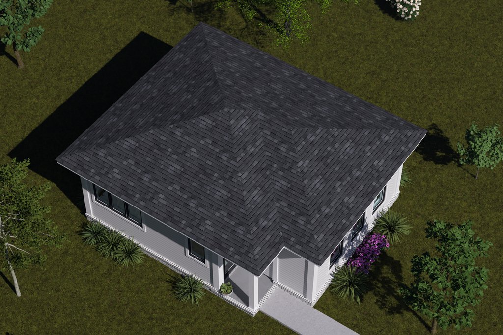 - Overhead Roof Plan(s): A view of the home from above showing roof pitch, peaks, valleys, and other details.