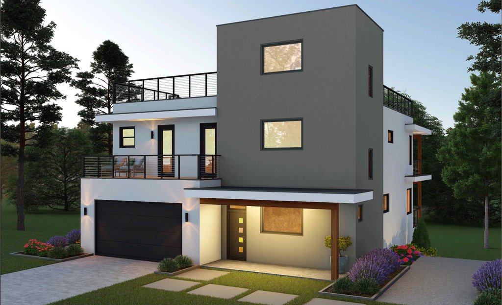 - Overhead Roof Plan(s): A view of the home from above showing roof pitch, peaks, valleys, and other details.