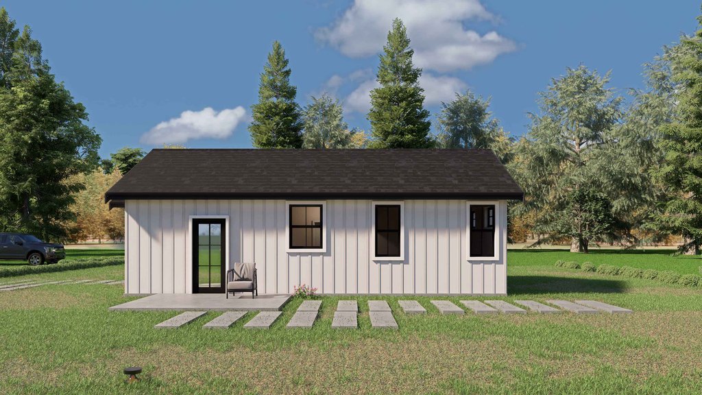 - Exterior Elevations: A blueprint picture of all four sides showing exterior materials and measurements.