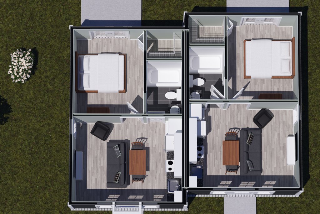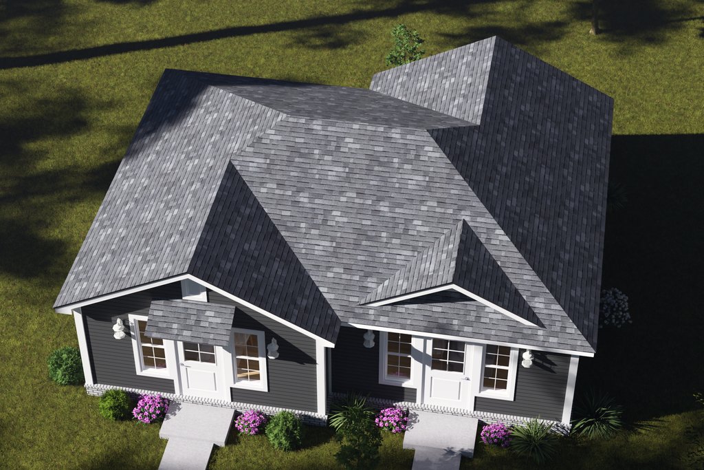 - Overhead Roof Plan(s): A view of the home from above showing roof pitch, peaks, valleys, and other details.