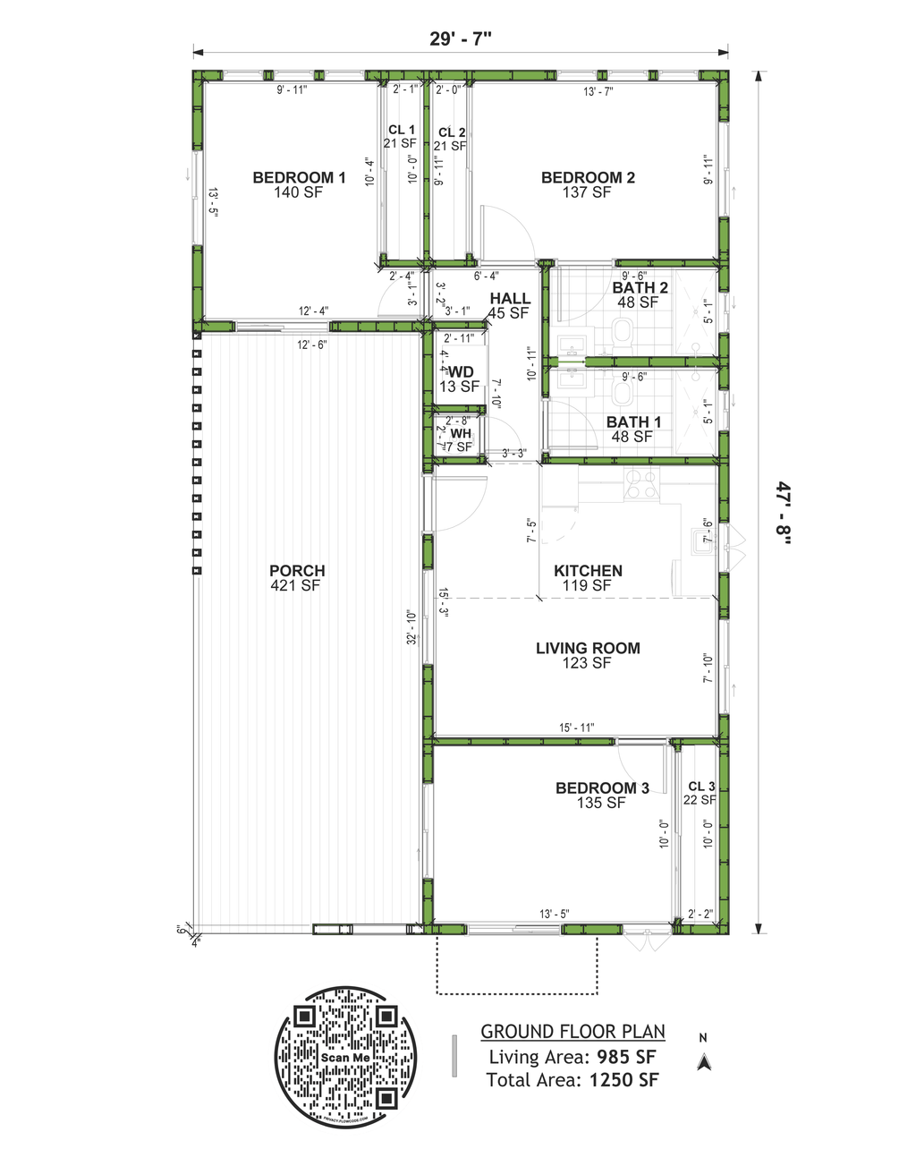 - Floor Plan(s): Detailed plans for each level showing room dimensions, wall partitions, windows and doors, etc.